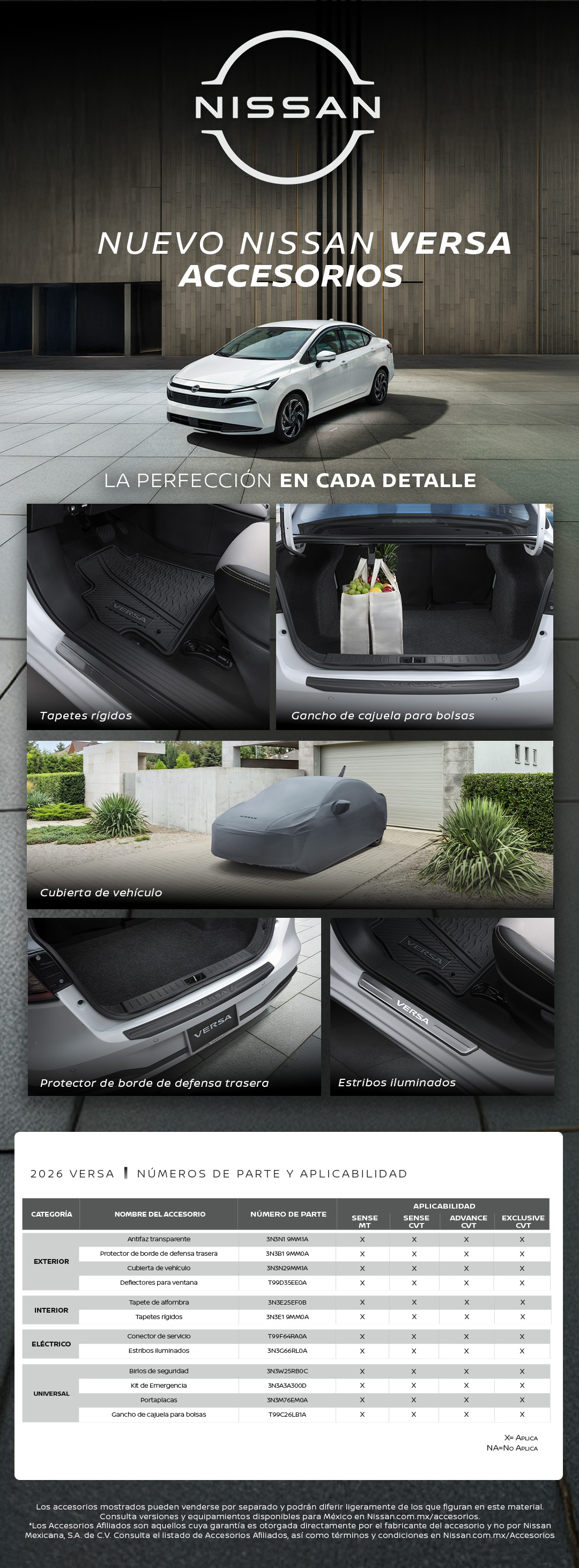 * Los Accesorios Afiliados son aquellos cuya garantía es otorgada directamente por el fabricante del accesorio y no por Nissan Mexicana, S.A. de C.V. Consulta el listado de Accesorios Afiliados, así como términos y condiciones en Nissan.com.mx/accesorios.